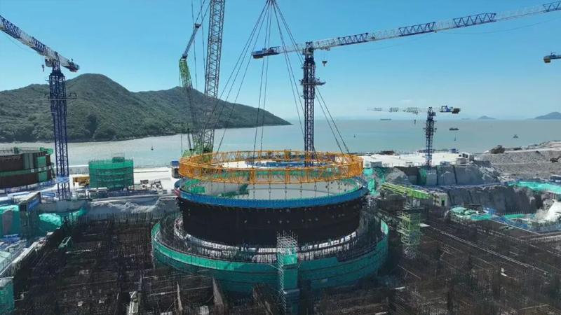 金七門核電1號機組鋼結構安全殼鋼襯里模塊經過4個多小時的緊張作業平穩落位,巨力索具環形吊具為此次吊裝提供了關鍵保障。