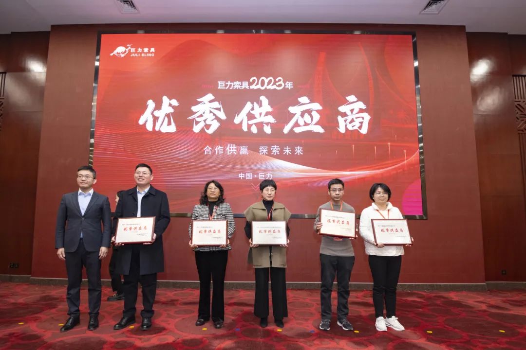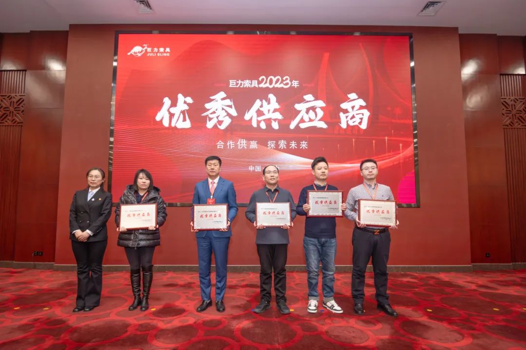 2023年,巨力索具和供應(yīng)商伙伴在高層互訪(fǎng)、產(chǎn)品開(kāi)發(fā)、技術(shù)共享等領(lǐng)域取得了諸多成果。為感謝供應(yīng)商在品質(zhì)、創(chuàng)新、保供及合作等方面作出的突出貢獻(xiàn),本次大會(huì)向10家供應(yīng)商授予了“優(yōu)秀供應(yīng)商”獎(jiǎng)項(xiàng)。