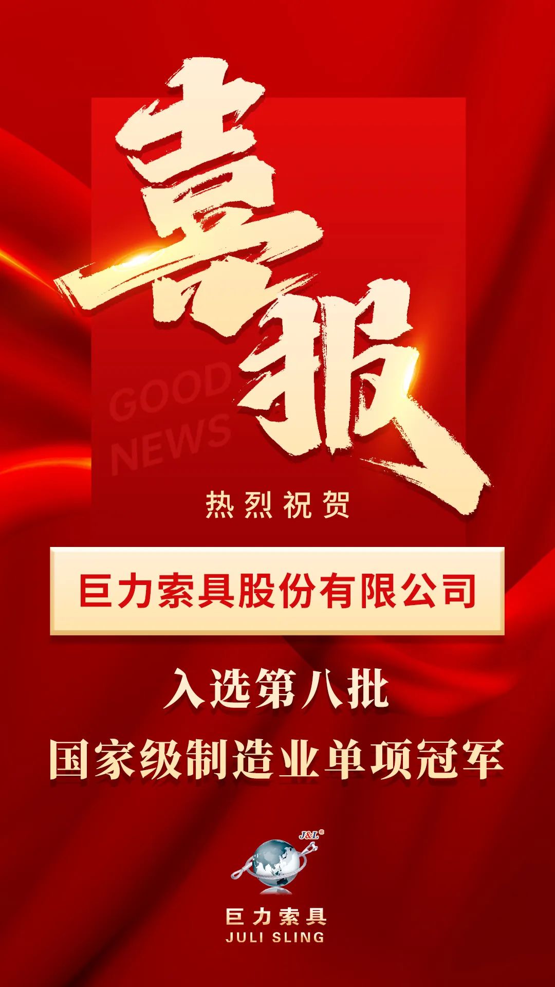 國家級榮譽!巨力索具獲評國家級制造業(yè)單項冠軍企業(yè)