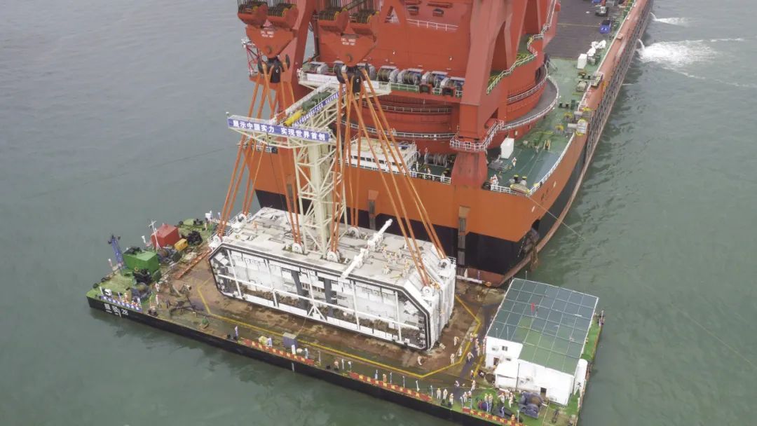 港珠澳大橋最終接頭縫隙僅為12.35米,接頭長度就要12米,且重達(dá)6000噸,為避免其入水后將受到洋流,浮力等影響,要求高低差控制在15mm以內(nèi),難度堪比“太空對接”。完成此次吊裝的產(chǎn)品是巨力索具提供的荷載900噸,長度60米的高強度吊裝帶,其長度誤差控制在50mm內(nèi),比常規(guī)吊帶精度提高了數(shù)十倍。而承載此次吊裝的是世界最大單臂全旋回起重船“振華30”,同時振華30所配套的所有主鉤起升和變幅鋼絲繩均是由巨力索具生產(chǎn)制造,其單根重量超200噸,是當(dāng)時國內(nèi)最大直徑復(fù)雜結(jié)構(gòu)超高強度鋼絲繩,是助力振華30實現(xiàn)12000噸強力吊裝的關(guān)鍵組成部分。