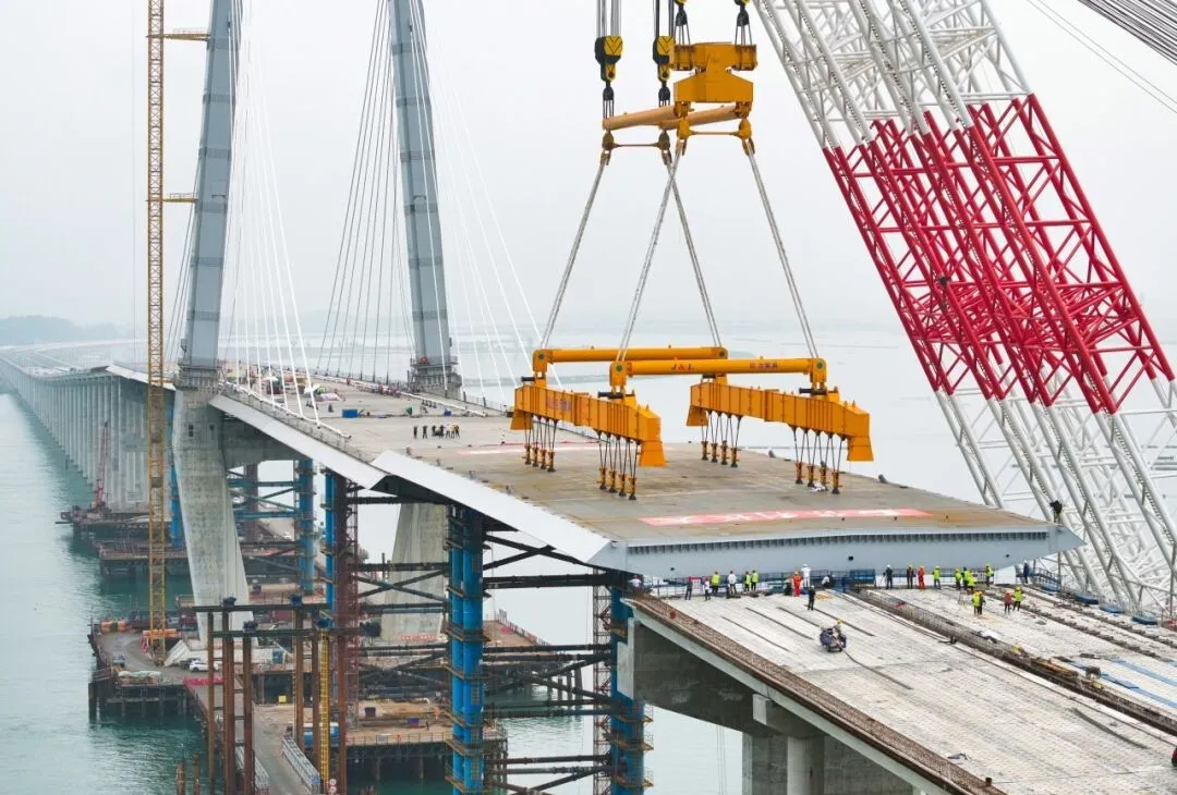 隨著最后一塊鋼箱梁成功吊裝到位