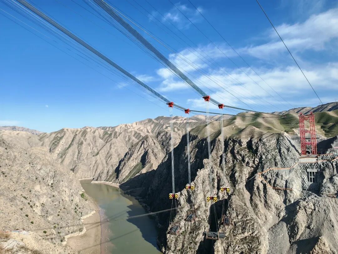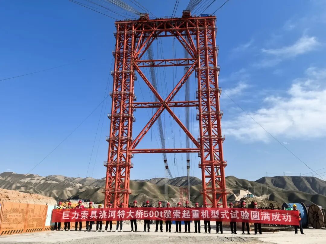 2025年5月10日,蘭永臨高速公路關(guān)鍵控制性工程洮河大橋500噸大型纜索吊裝系統(tǒng)試吊完成,標(biāo)志著我國西北地區(qū)在建最大上承式鋼管混凝土拱橋建設(shè)取得關(guān)鍵突破,巨力索具吊裝系統(tǒng)成功為大橋主體施工按下“加速鍵”,大橋正式邁入主體結(jié)構(gòu)施工階段。