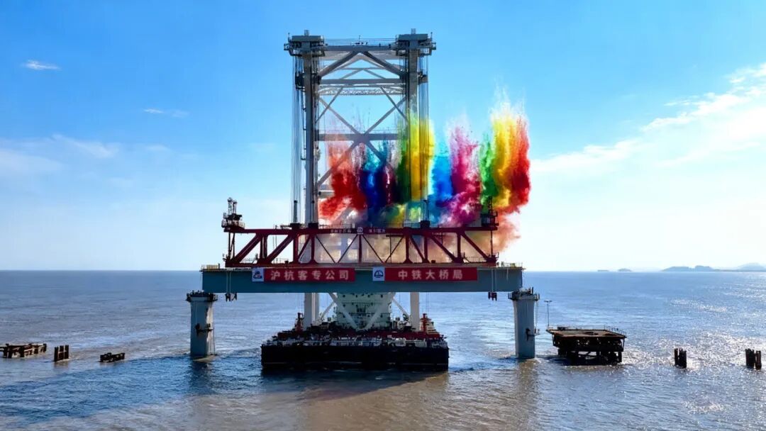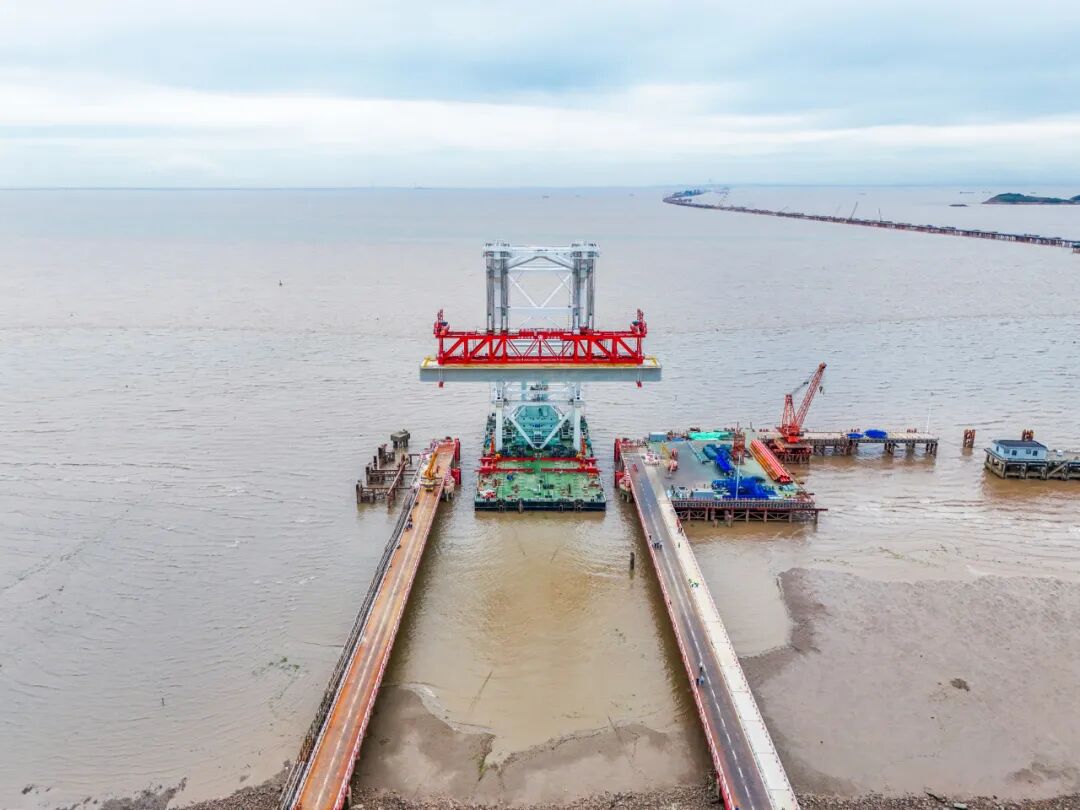 杭州灣跨海鐵路大橋全長(zhǎng)約29.2公里,設(shè)計(jì)時(shí)速350公里,是新建南通至寧波高速鐵路的控制性工程。建成后,將成為我國(guó)“八縱八橫”高鐵網(wǎng)沿海通道的重要組成部分,對(duì)完善區(qū)域路網(wǎng)結(jié)構(gòu)布局,方便沿線人民群眾出行,推進(jìn)長(zhǎng)三角一體化高質(zhì)量發(fā)展具有不可估量的意義。目前,大橋建設(shè)正按計(jì)劃穩(wěn)步推進(jìn),預(yù)計(jì)2026年底將完成海中引橋主體工程,2027年底建成通車。