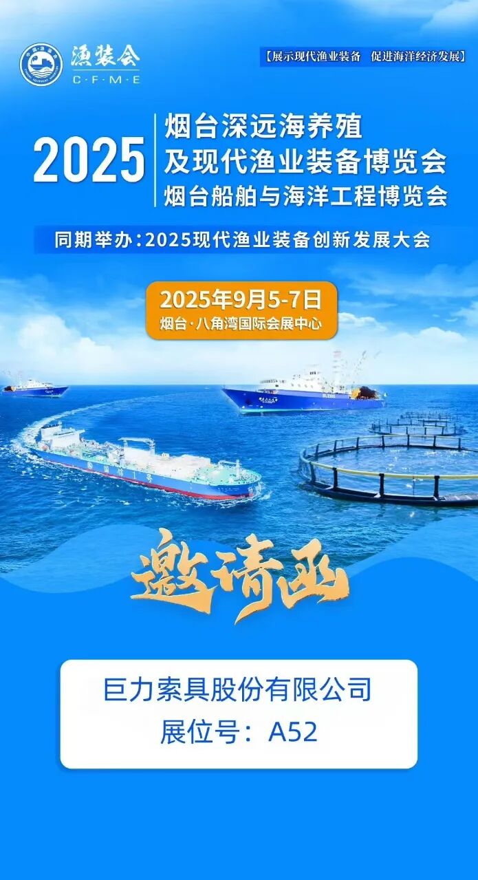 作為索具行業(yè)的領(lǐng)軍企業(yè),巨力索具將亮相本屆展會,誠邀業(yè)界同仁、合作伙伴與廣大客戶蒞臨展位,共同探討深遠海養(yǎng)殖與海洋裝備的前沿技術(shù)與發(fā)展趨勢,攜手邁向海洋經(jīng)濟新藍海。