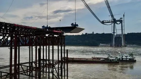江津白沙長(zhǎng)江大橋首節(jié)鋼箱梁吊裝成功,今年有望建成通車