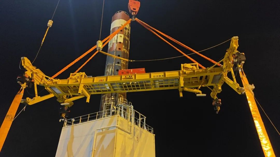 巨力索具為本次全程吊裝保駕護航,提供的50噸折疊式海上單葉片吊具實現(xiàn)單個風電葉片在空中與輪轂的對接安裝。